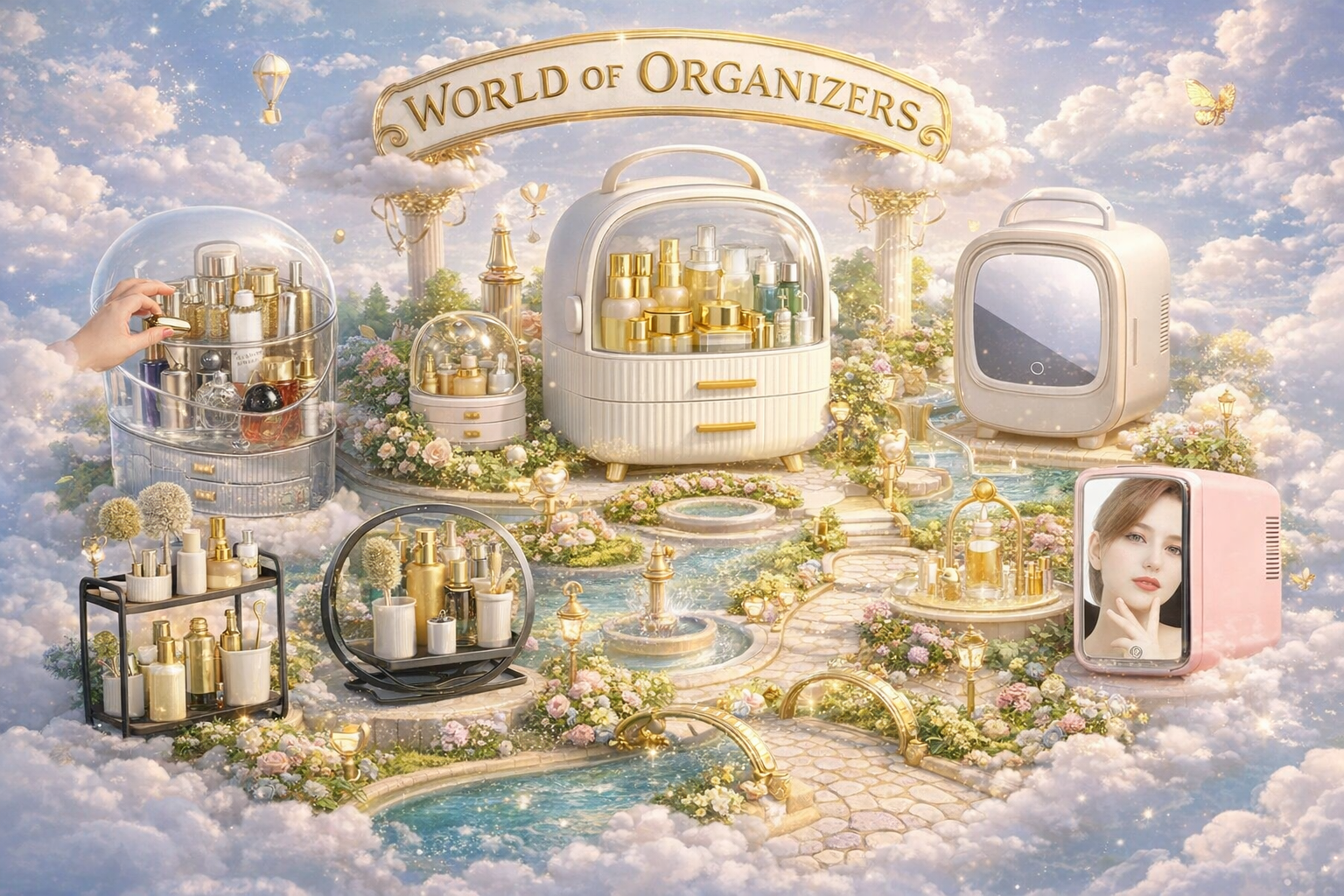 Luxury Portable Cosmetic Organizer Box with Lid & Drawers