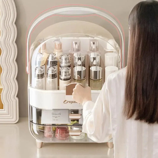 Elegant Multi-Layer Cosmetic Organizer with Lid & Drawers