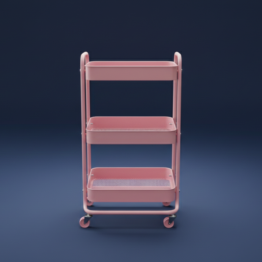 3-Tier Foldable Steel Trolley – Portable Multi-Purpose Storage Cart