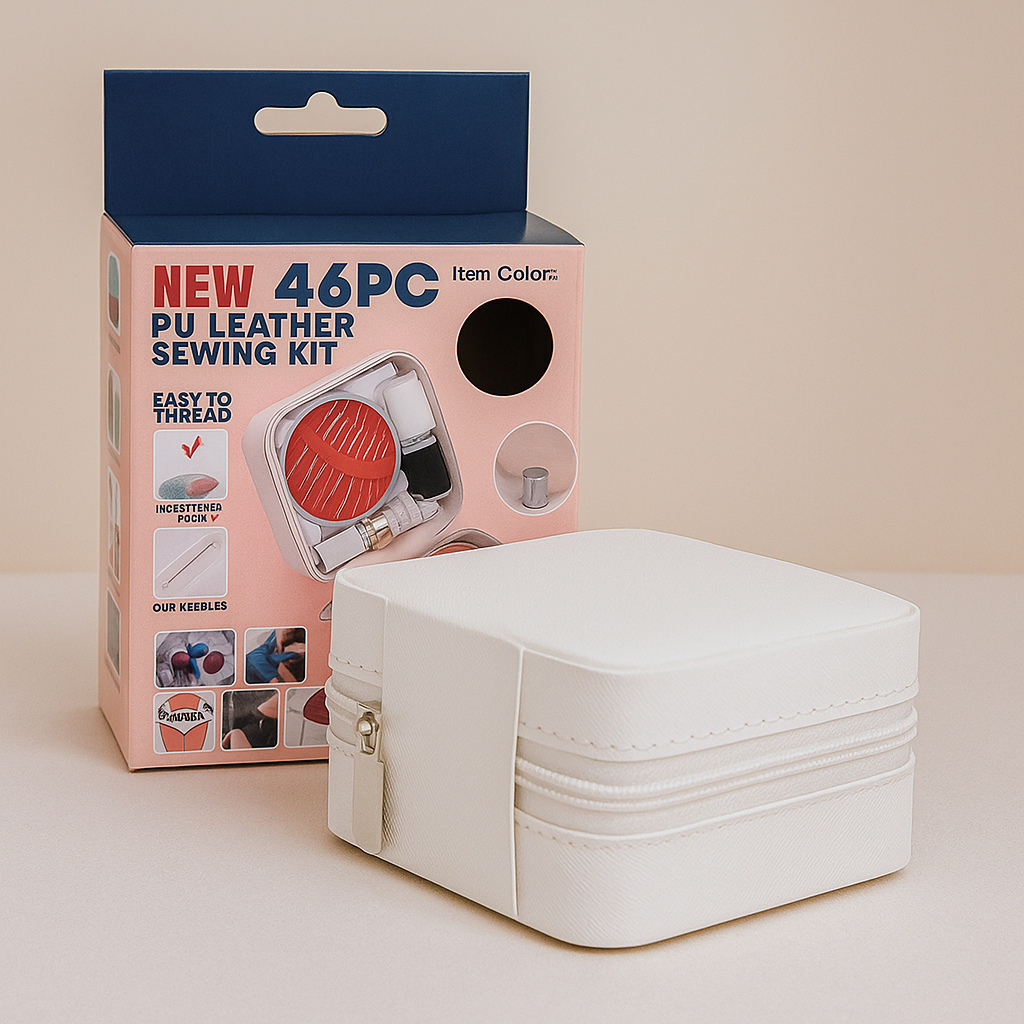 Stay prepared for any wardrobe emergency with this 46-Piece PU Leather Sewing Kit — a must-have for every home, office, or travel bag! Designed for convenience and durability, this compact kit includes high-quality threads, needles, scissors, buttons, tape measure, safety pins, and more — all neatly organized in a stylish PU leather case.