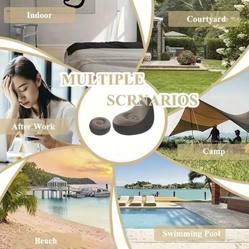 Inflatable Lounge Chair, Outdoor Foldable Portable Lazy Sofa With Footstool, Living Room And Bedroom Air Sofa Set