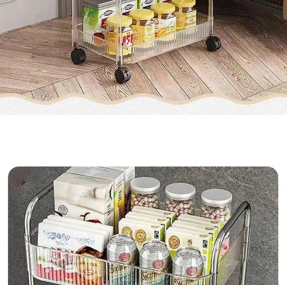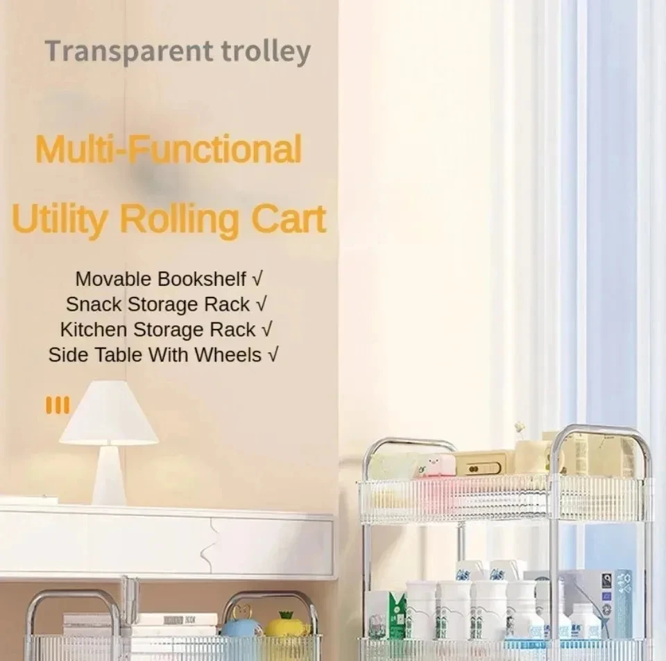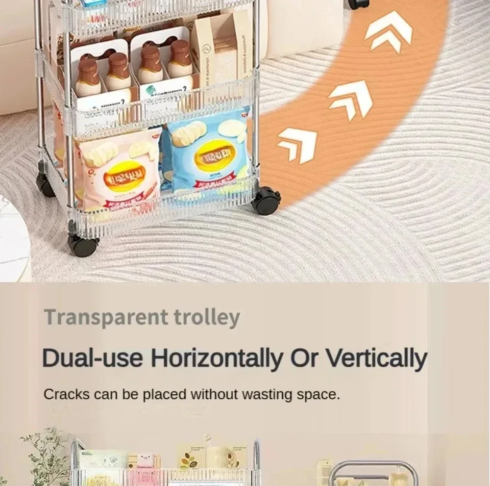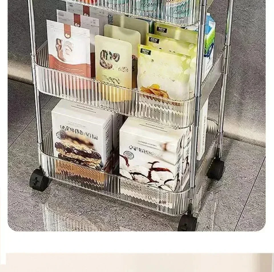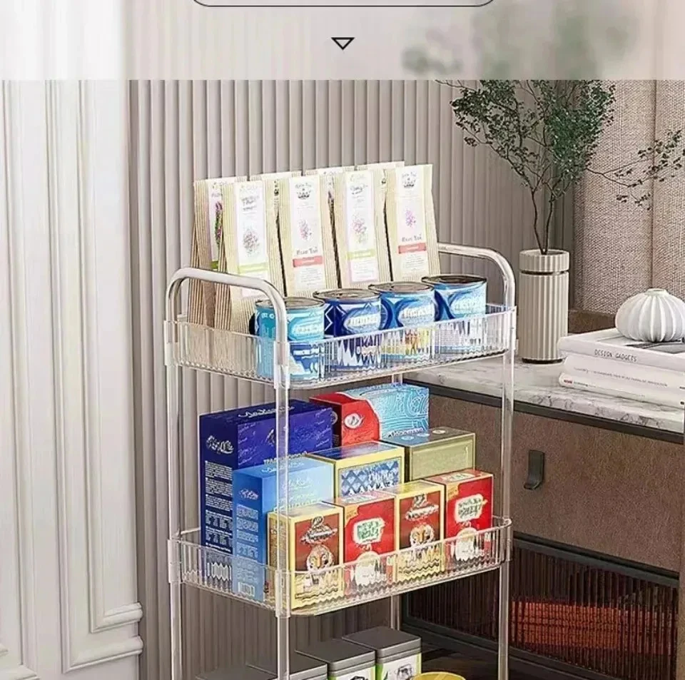 Rolling Cart Storage Rack Transparent Acrylic Snack Cosmetics Sundries Storage Rack 3 Layers With Wheels Mobile Storage Rack