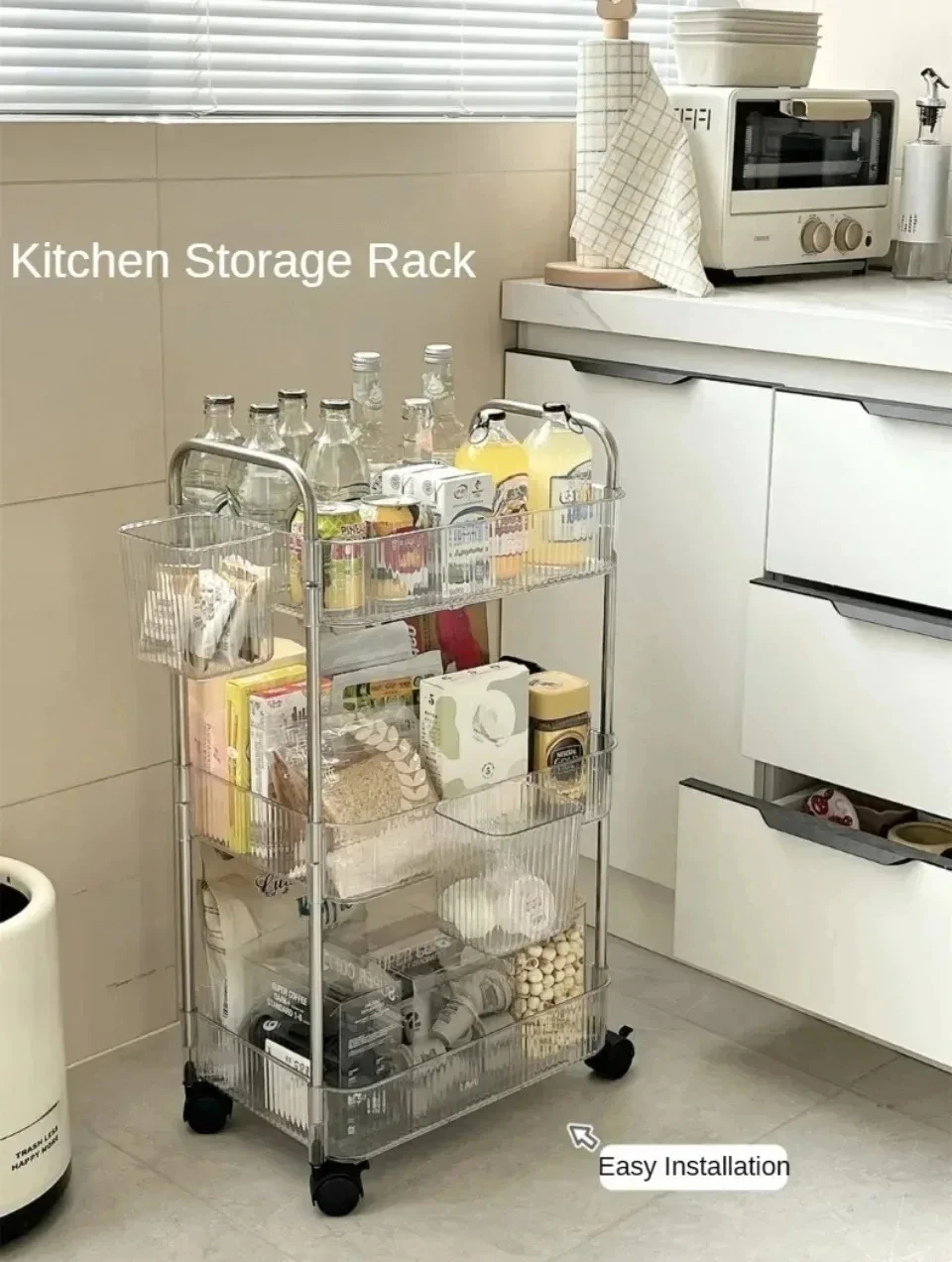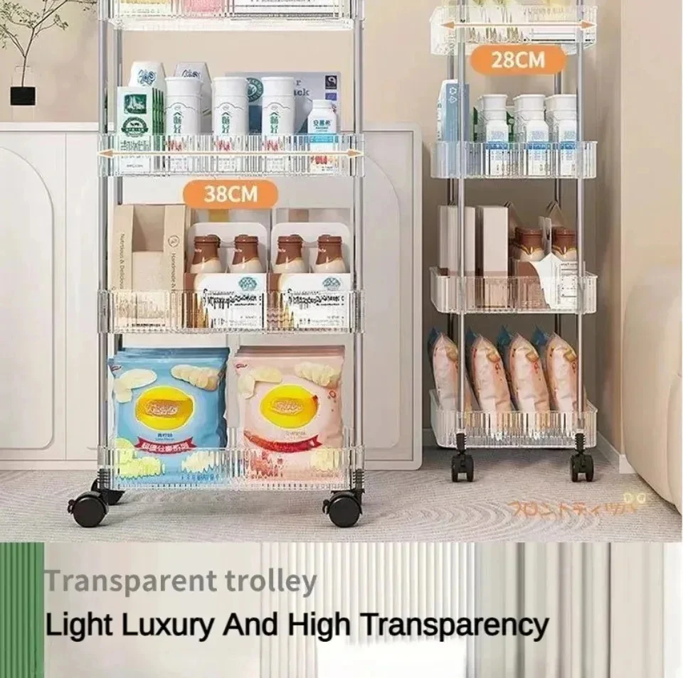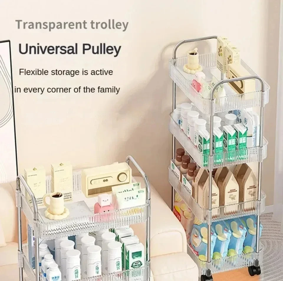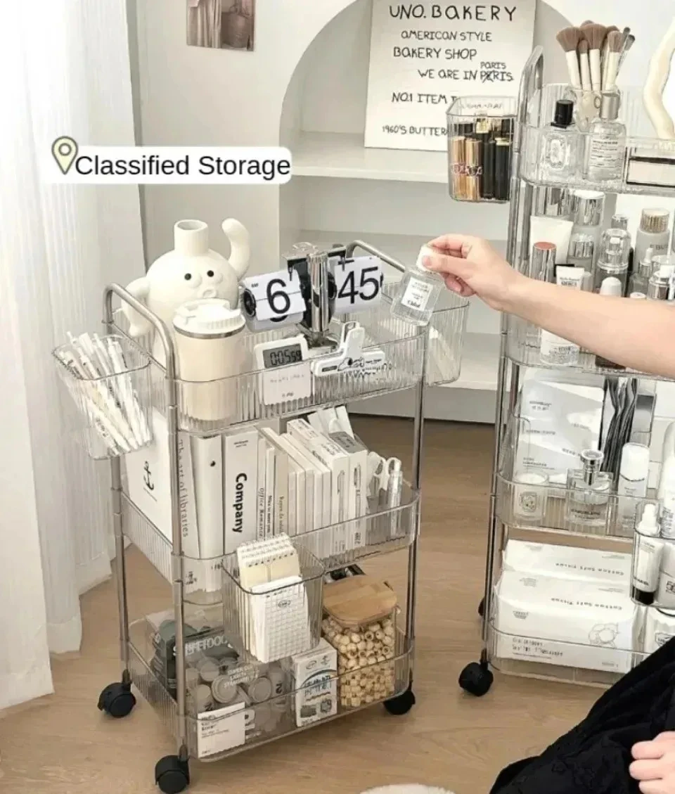 Rolling Cart Storage Rack Transparent Acrylic Snack Cosmetics Sundries Storage Rack 3 Layers With Wheels Mobile Storage Rack