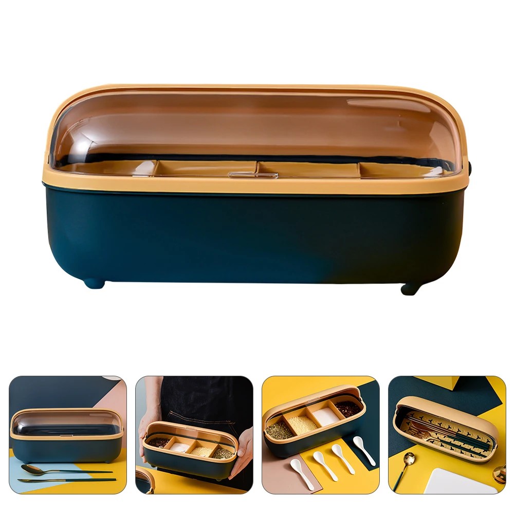 Seasoning Box Kitchen Spice Jar Condiment Storage Container Multi-Grid Spice Organizer Plastic Condiment Container For